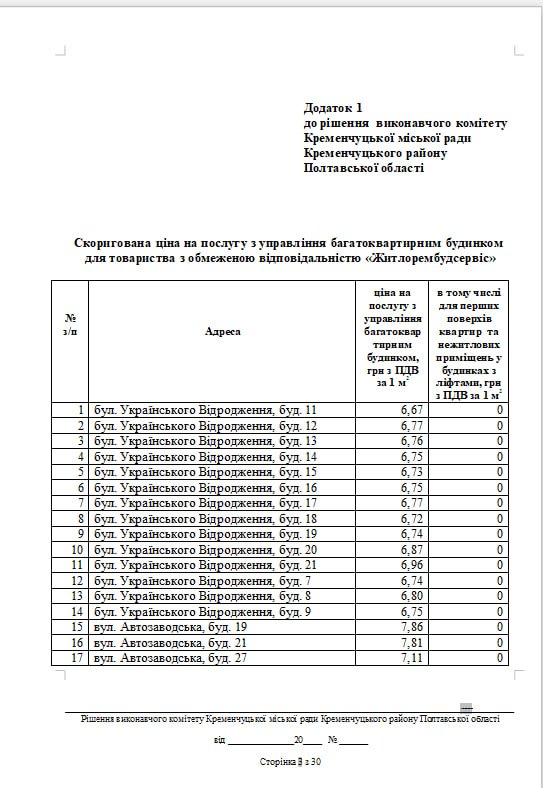 Відомо, що «тариф» підвищується приблизно на 20%. Оновленні ціни мають почати діяти з липня 2024 року. Товариство з обмеженою відповідальністю «Житлорембудсервіс» та ще одне ТОВ «Керуюча компанія «Будсервіс» повинні попередити співвласників багатоквартирних будинків про нововведення, зазначено у документі.