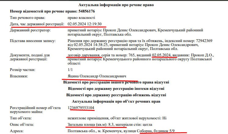 Найбільше здивувало, що наразі ми не побачили пана Жукова серед власників приміщень на Соборній 5/9. Згідно з витягом Державного реєстру речових прав на нерухоме майно, власник майна, яке він викупив — Олександр Олександрович Яцина. При чому приміщення пану Яцині подарували: право власності оформлене згідно з договором дарування від 2 травня 2024 року. Це за тиждень до постанови Касаційного суду (від 8 травня), яка постановила витребувати це приміщення з незаконного володіння власника. Ми звернулись до адвоката мешканців, аби отримати коментар щодо подальших дій, проте поки що інформації нам не надали.