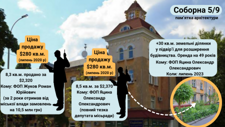 У 2019 році до редакції звернулись шоковані мешканці будинку на вул. Соборна 5/9. Одного ранку вони прокинулись та побачили, що у них не стало частини під'їзду. Особливість будинку — кожен під'їзд має два виходи, «парадний» (на головну вулицю), та «запасний», з виходом у подвір’я. Мешканцям перегородили доступ до «парадної» частини під'їзду, що виходить на вулицю Соборну, відокремивши стіною близько семи квадратних метрів. По той бік залишилося фортепіано однієї з мешканок будинку та поштові скриньки. Виявилось, що міська влада раптом прийняла частину під'їзду до комунальної власності (саме ту, що виходить на центральну вулицю міста). Та віддала в оренду підприємцю, який розгорнув ремонт. Далі цю частину під'їзду приватизували. Зараз там щось нове, комерційне та дуже красиве.