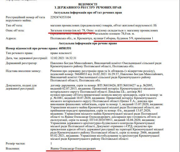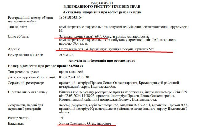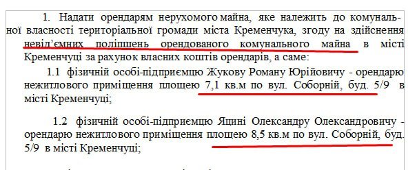 Покупцем одного з приміщень став ФОП Яцина Олександр Олександрович — повний тезка депутата Кременчуцької міської ради.