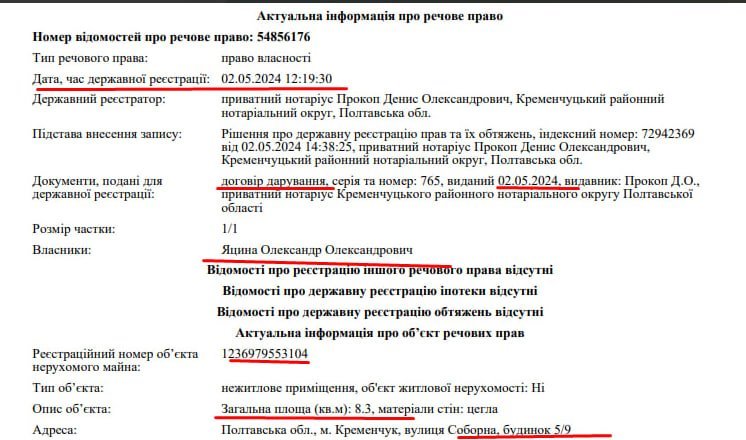 Найбільше здивувало, що наразі ми не побачили пана Жукова серед власників приміщень на Соборній 5/9. Згідно з витягом Державного реєстру речових прав на нерухоме майно, власник майна, яке він викупив — Олександр Олександрович Яцина. При чому приміщення пану Яцині подарували: право власності оформлене згідно з договором дарування від 2 травня 2024 року. Це за тиждень до постанови Касаційного суду (від 8 травня), яка постановила витребувати це приміщення з незаконного володіння власника. Ми звернулись до адвоката мешканців, аби отримати коментар щодо подальших дій, проте поки що інформації нам не надали.