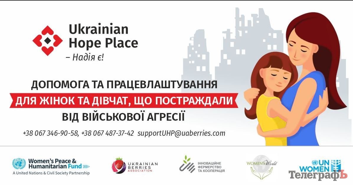 Проєкт «Місце надії України» впроваджується Асоціацією «Ягідництво України» в партнерстві з ГС «Інноваційне фермерство і кооперація» та БО БФ «Світ жінок», за технічної підтримки ООН Жінки в Україні та за фінансування Жіночого фонду миру та гуманітарної допомоги ООН.