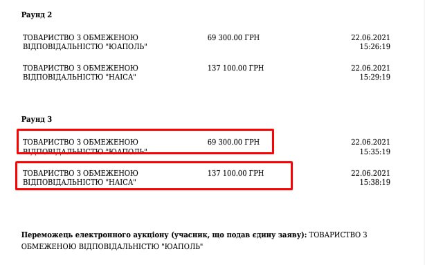 Його єдиним конкурентом стала ТОВ «НАІСА», яку створили ще пізніше — за тиждень аукціону (згідно з відкритими даними).