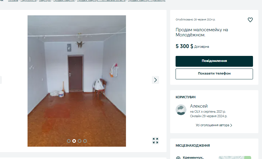 Наприклад, за схожою ціною за квадратний метр продають малосімейку на Молодіжному, що потребує ремонту.