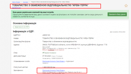 За даними відкритих реєстрів, засновник компанії Крем-Терра (діяльність у сфері фотографії) — Радіонов Кирило Сергійович.