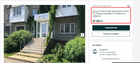 Створена 5 місяців тому компанія «Юаполь», яку очолює 25-річний керівник, сплачує приблизно $92 тис. за 440 кв. м. Вартість квадратного метра на першому поверсі у центрі міста склала $209 за квадрат.