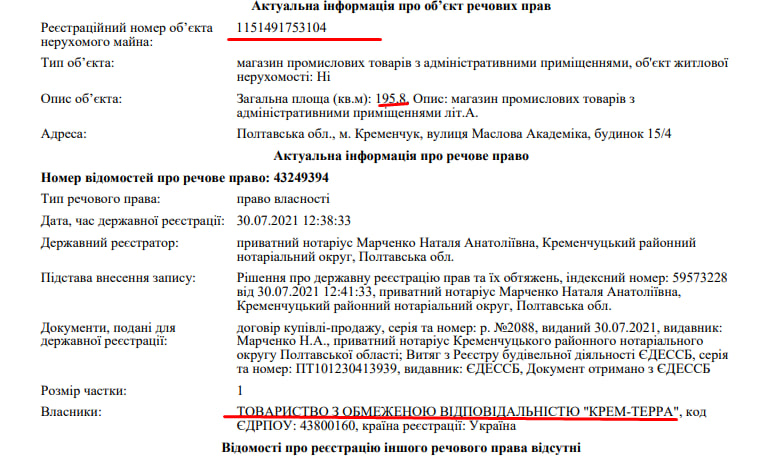 Наразі ми не знайшли ТОВ «Кременчуцька міська друкарня» серед власників приміщень по вул. Академіка Маслова, буд. 15/4. Згідно з витягом з держреєстру, зараз власник цього приміщення — компанія «Крем-Терра».