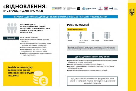 Після цього подається заява на компенсацію. Далі комісія з розгляду питань щодо надання компенсації, створена при виконавчому комітеті, розгляне заяву, проведе обстеження пошкодженого майна та визначить розмір компенсації на його відновлення.