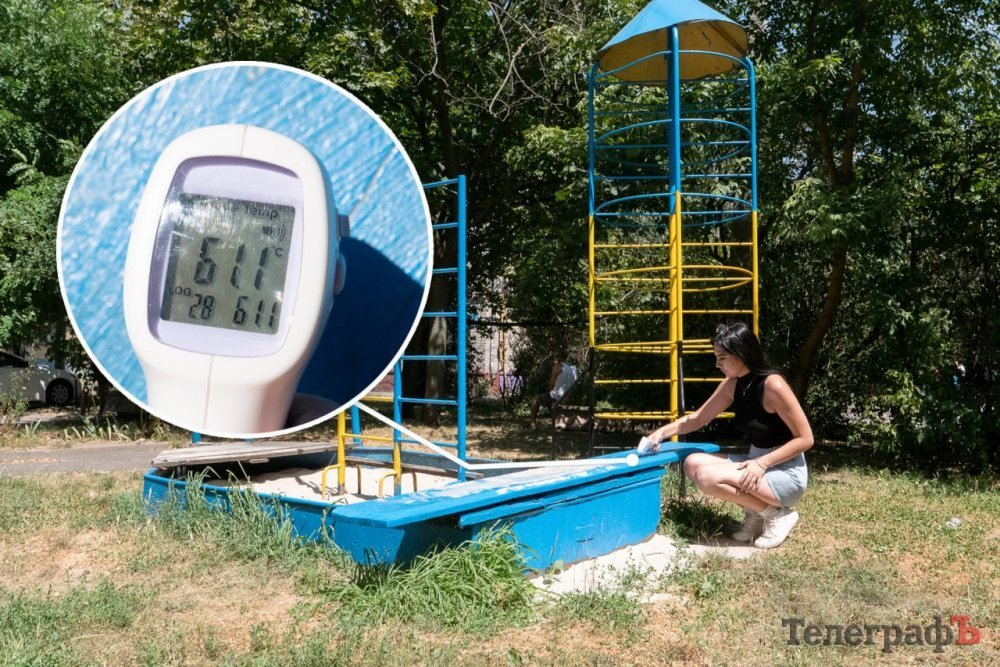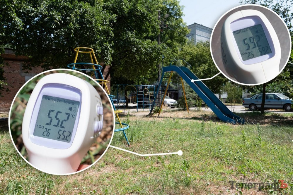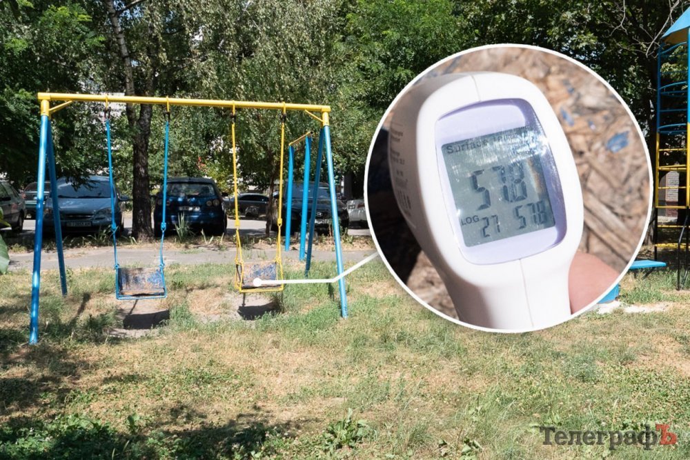 Температура на дитячому майданчику, особливо на металевих конструкціях, таких як гойдалки та гірки, коливається від 55 до 70°C.
