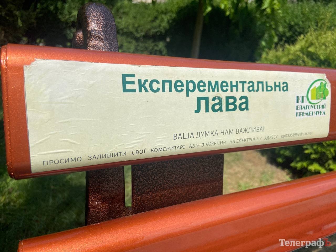 28 липня фотокореспондент «Кременчуцького Телеграфа» знайшов у сквері Бабаєва «експерементальну лаву», встановлену «Благоустроєм Кременчука».