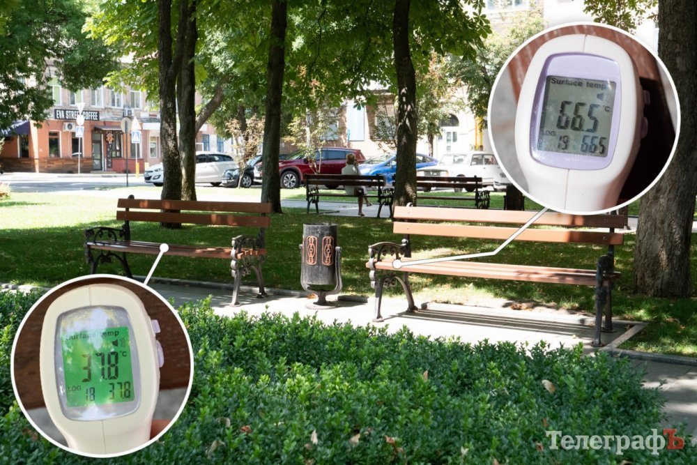 Нагадаємо, що нещодавно «Кременчуцький Телеграф» перевірив, наскільки нагріваються різні поверхні у центрі міста в спеку. З’ясувалось, що дерев’яні лавки на сонці нагріваються до 66°C, а у тіні — до 37°C.