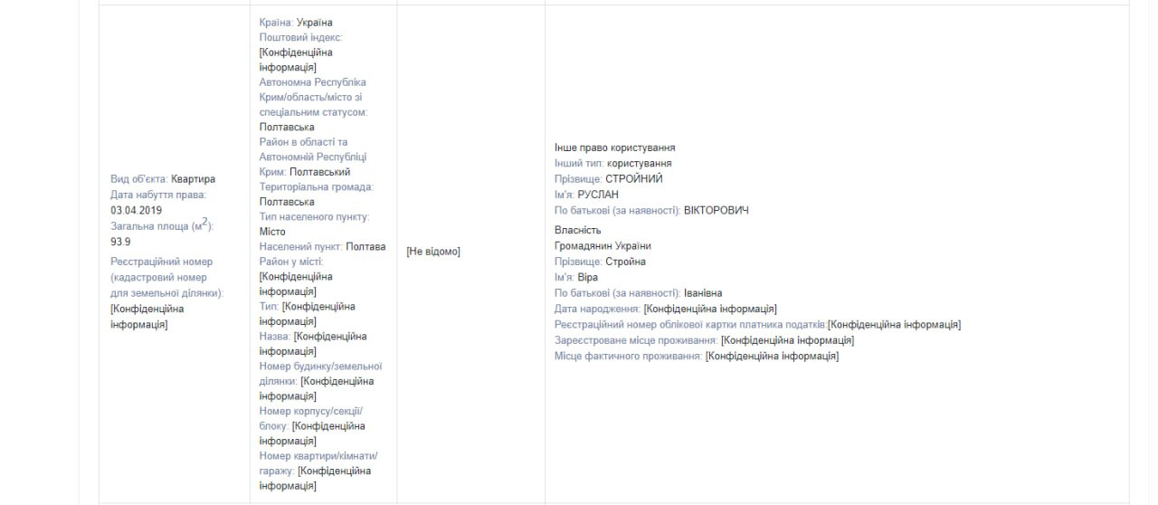 Цією квартирою користується сам Руслан Стройний — відповідні підтвердження можна знайти у декларації посадовця.