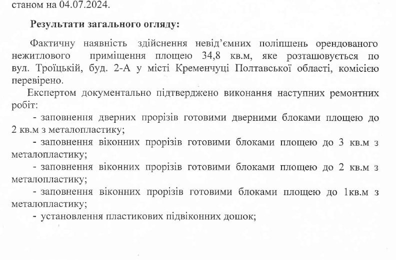 Згідно з документами, орендар вклав у ремонт понад 230 тис. грн.