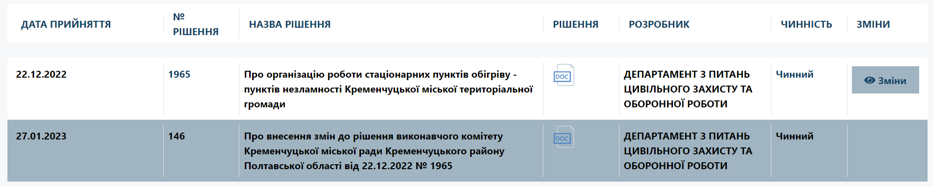 Так, на території Кременчуцької громади Пункти незламності створені на підставі рішення виконавчого комітету Кременчуцької міської ради від 18 листопада 2022 року №?1722 «Про створення стаціонарних пунктів обігріву Кременчуцької міської територіальної громади». Так, все вірно, Пункти незламності — це пункти обігріву.