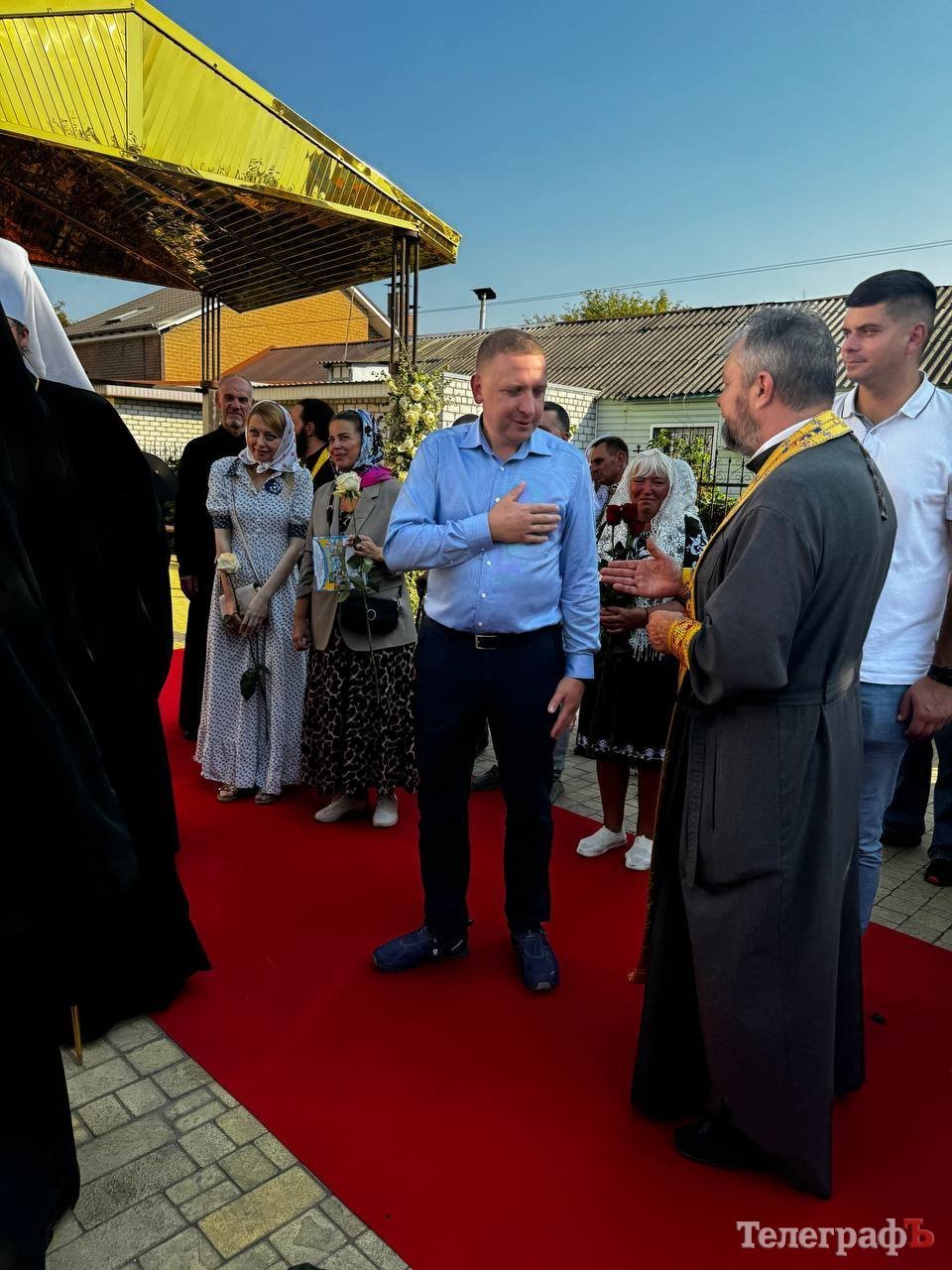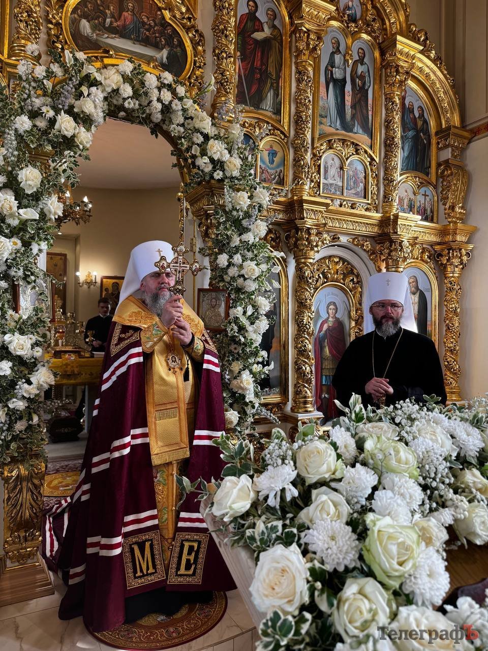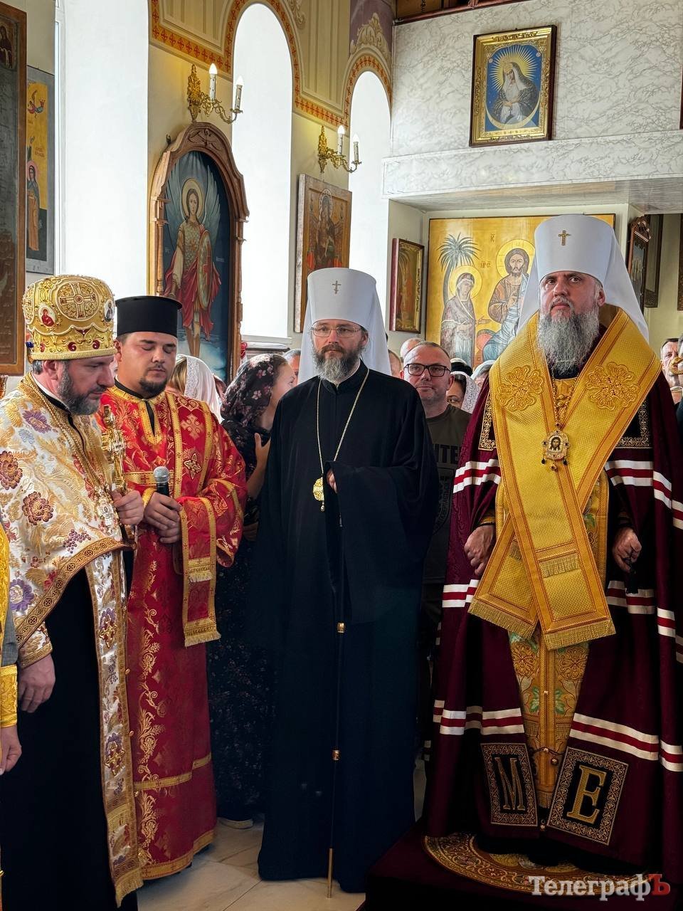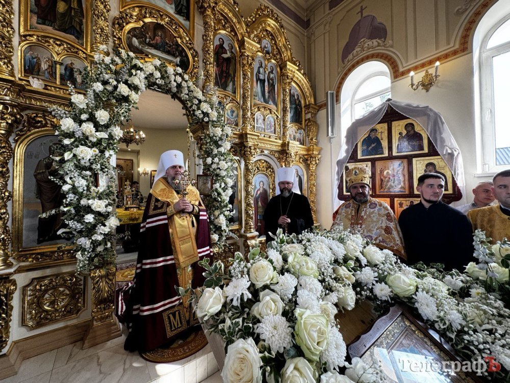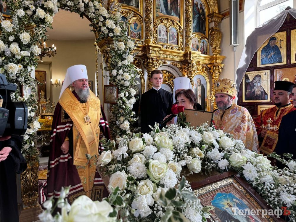Разом із Предстоятелем Православної Церкви України за богослужінням також молилися митрополит Полтавський і Кременчуцький Федір, архієпископ Кропивницький і Голованівський Марк, архієпископ Вишгородський Агапіт, настоятель храму архімандрит Феодосій (Овчарук), місцеве духовенство, міський голова, меценати та віряни.