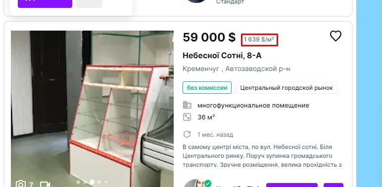 Пані Діна спромоглась викупити комунальні приміщення у 2020-му за ціною менше, ніж $200 за кв. м. А зараз найдешевше житло, яке ми знайшли у центрі на продаж, коштує під $500 за кв. м. Це у 2,5 раза дорожче. При чому це просто квартира, а не комерційний об’єкт.