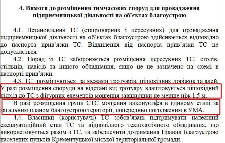 У правилах встановлення тимчасових споруд зазначено, що мощення виконується в єдиному стилі, план благоустрою попередньо погоджує управління міської архітектури.