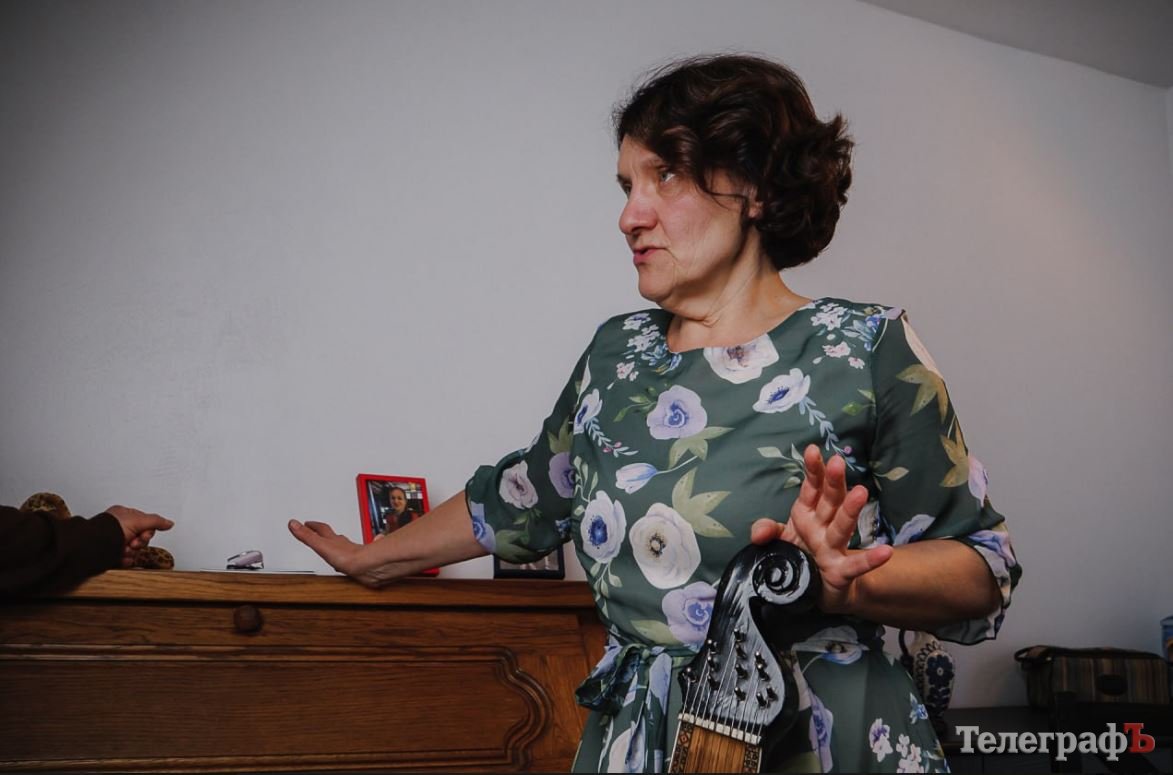 Із Волині пані Тетяна привезла бандуру, яку їй купили й подарували благодійники. Тож жінка у Кременчуці повернулася до свого улюбленого заняття — музики. Каже, що гра на бандурі лікує, допомагає відродитися.
