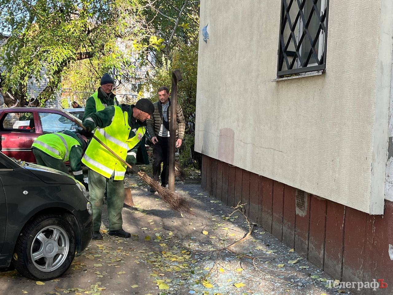 Також прибули комунальники, які допомагають мешканцям прибирати вибите скло.![]()