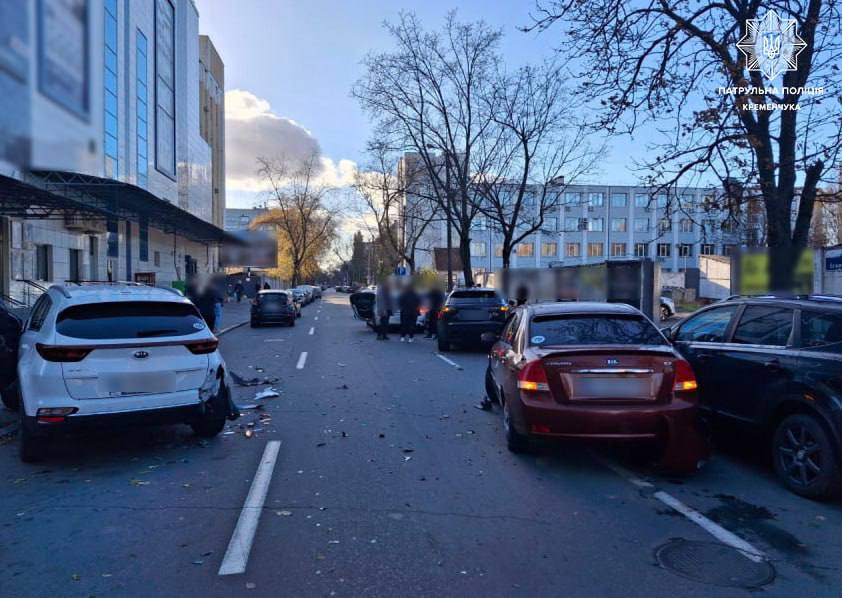 «Як результат, він зіткнувся з автомобілем BMW, який рухався вулицею Ігоря Сердюка, після чого водій вищевказаного транспортного засобу втратив керування та пошкодив транспортні засоби: Kia Sportage, Nissan Qashqai, Range Rover та Volkswagen Jetta», — йдеться у повідомленні патрульних.
