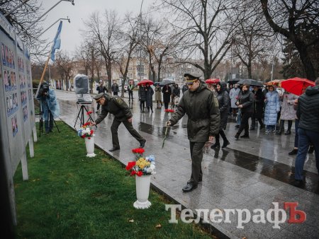 Сьогодні, 21 листопада, у Кременчуці вшанували людей, загиблих у боротьбі за демократичні цінності, права та свободи громадян, європейський вибір та незалежність України. До пам’ятної стели з нагоди Дня Гідності та Свободи посадовці міськвиконкому та райвійськадміністрації, молодь та жителі міста принесли квіти. Фотокореспондент «Кременчуцького Телеграфа» Артем Коваленко зробив фоторепортаж із місця події.