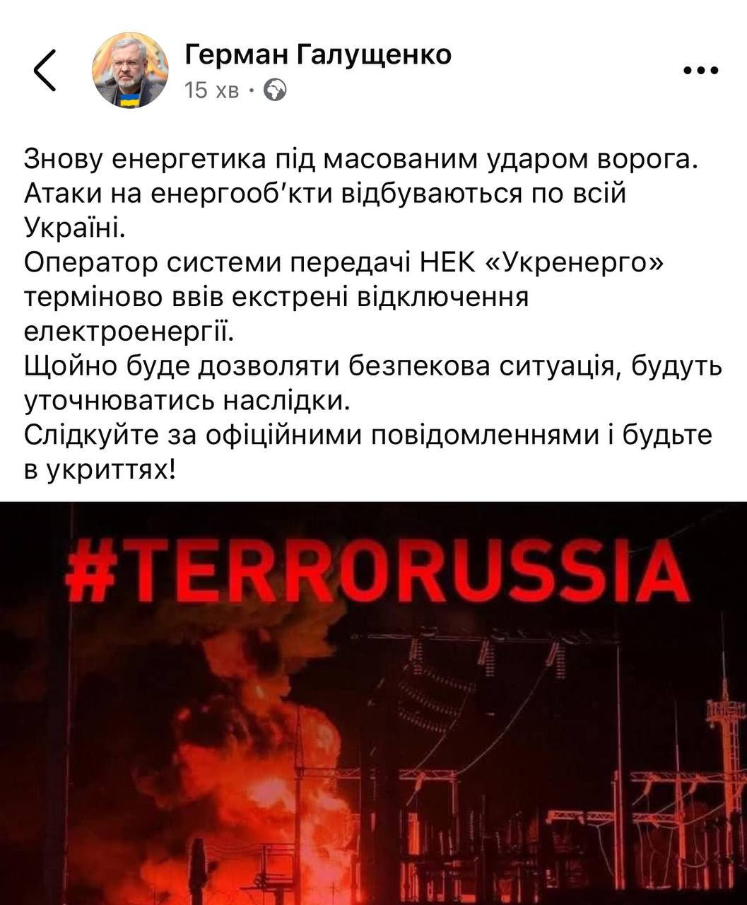 О 9.41 «Укренерго» скасувало ГАВ в повному обсязі.