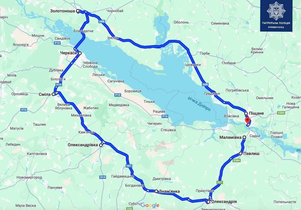 У Світловодську поблизу Кременчука перекрили рух автотранспорту через Дніпро. Через це у патрульній поліції розробили маршрут об’їзду, інформують у пресслужбі патрульної поліції Кременчука.