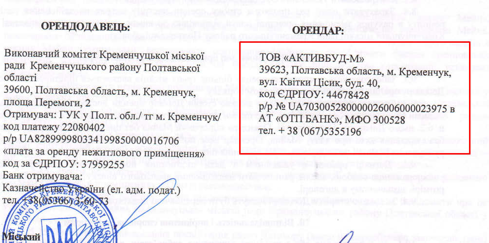 За паперами, орендарем стало ТОВ «АКТИВБУД-М». Її профіль — оптова торгівля будматеріалами та сантехнікою.
