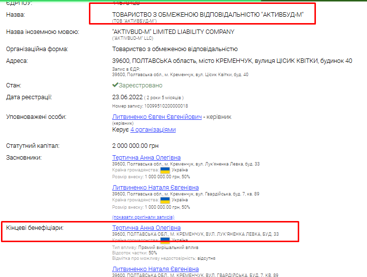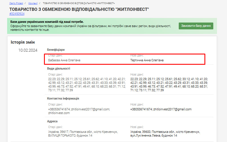 За дивним збігом, серед кінцевих бенефіціарів компанії значиться пані Тертична (Бабаєва). Вона увійшла до компанії у квітні 2024 року.