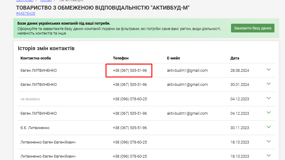 Зокрема, номер телефону компанії ТОВ «АКТИВБУД-М», який є в її історичних реєстраційних даних, привів нас до компанії «Домовий».
