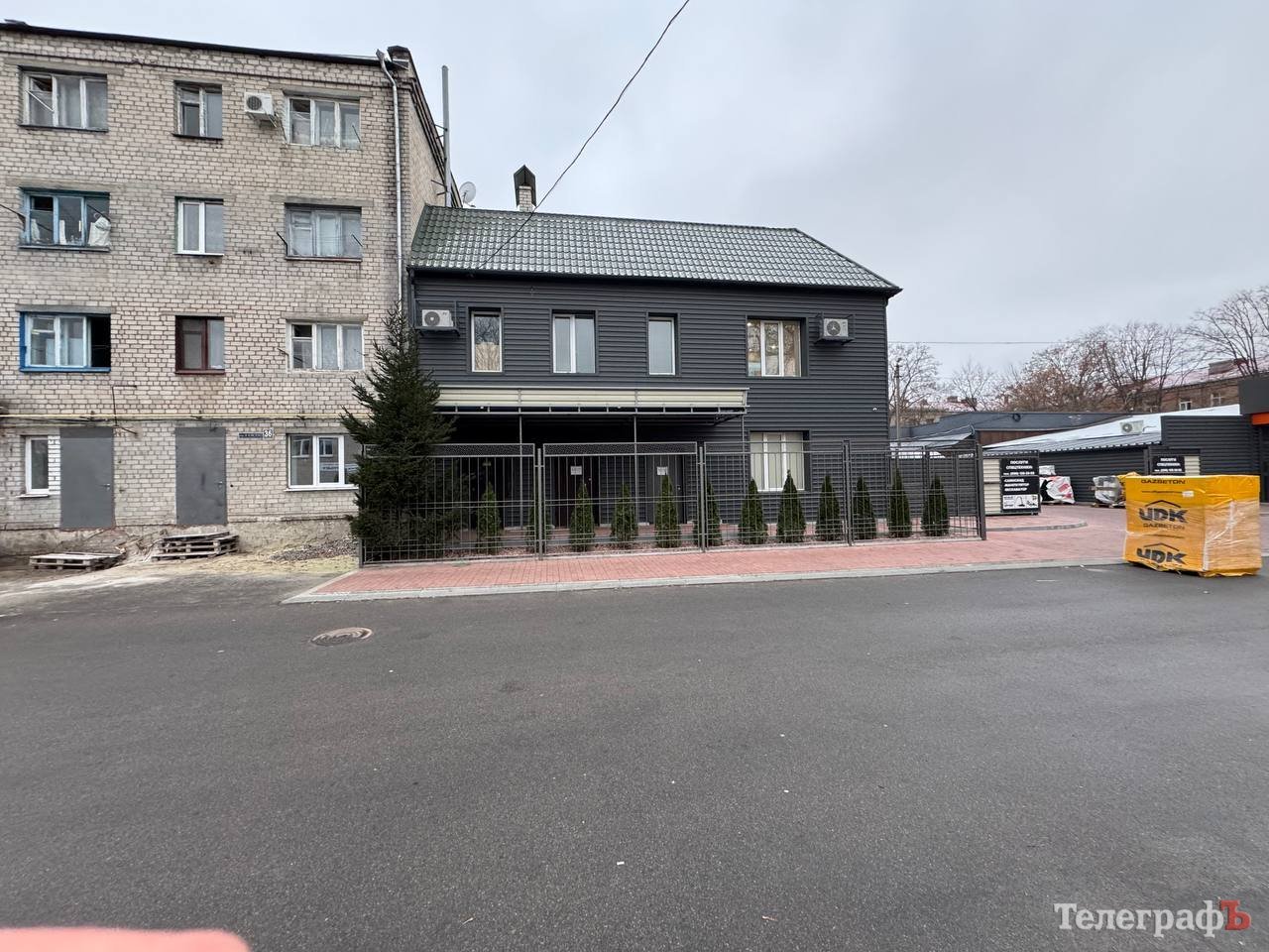За адресою ТОВ «АКТИВБУД-М» побачили будівельний магазин. Гугл каже, що це — «Будівельник», проте вивіски наразі немає. Відремонтована будівля знаходиться одразу за тією красивою прибудовою, співвласницею якої виявилась пані Тертична. Але нас чекав ще один сюрприз.