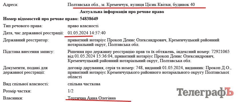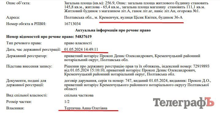 Нам підказали, що адреса будівлі — вул. Квітки Цісик 36 А. Держреєстр речових прав підказав, що з весни 2024 року одна зі співвласниць красивої будівлі — знов Анна Тертична.