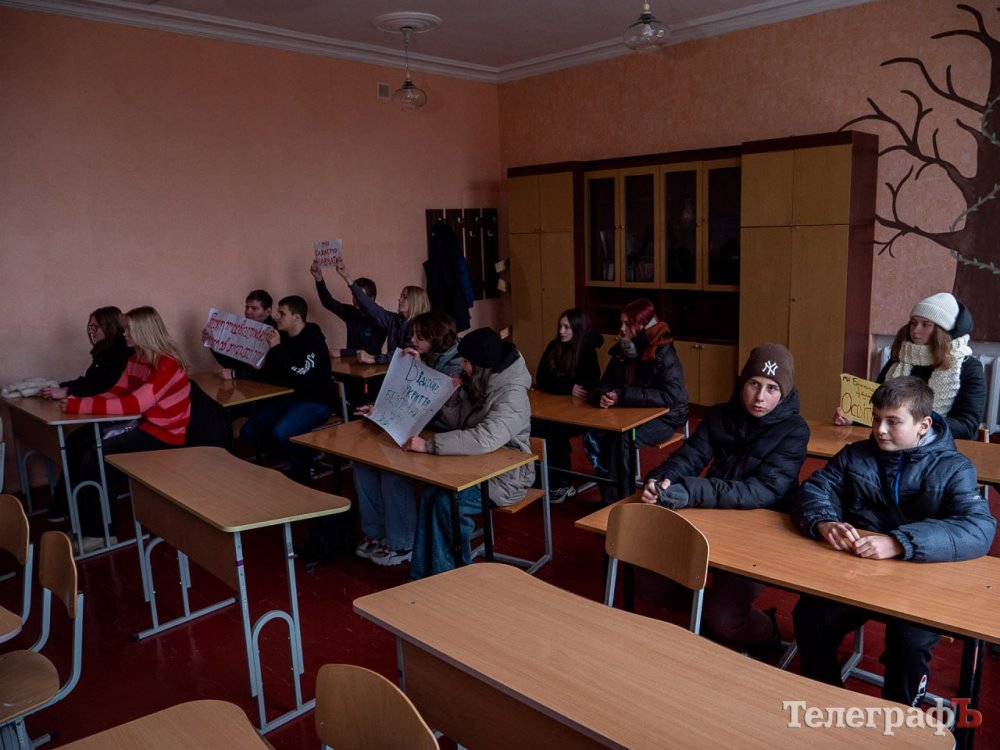 Зібралися під стінами школи із плакатами й самі діти — вони з дозволу батьків прийшли на зустріч із журналістами, аби заявити: їм набридло навчатися через екрани, вони хочуть повернутися за парти.