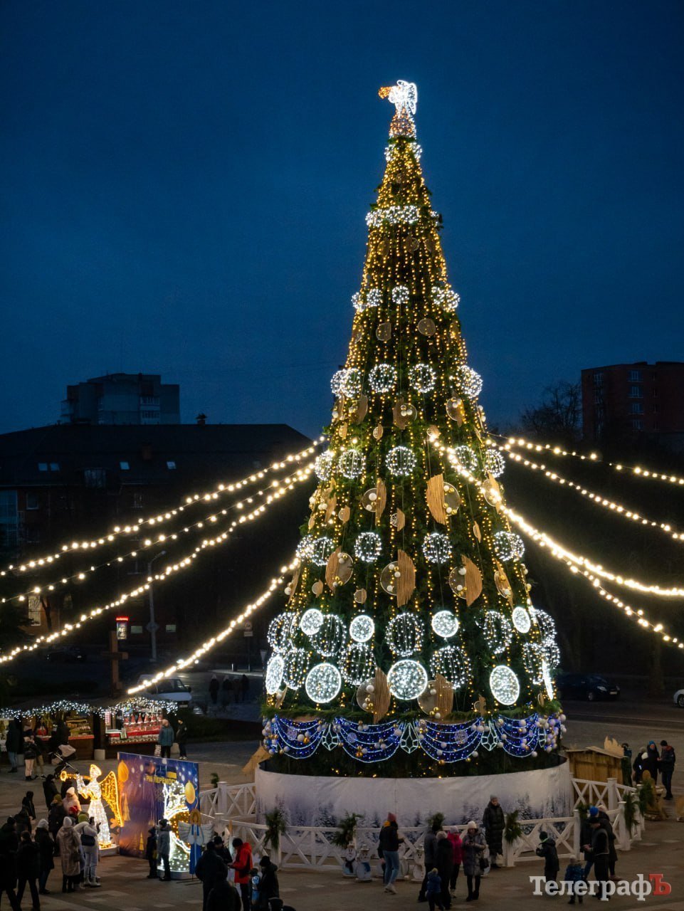 Сьогодні, 5 грудня, о 16.00 на площі Перемоги у Кременчуці засяяла головна ялинка міста. Про це повідомив фотокореспондент «Кременчуцького Телеграфа» з місця події.