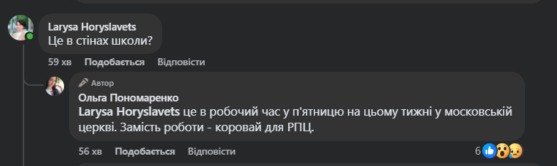 14 грудня кременчужанка Ольга Пономаренко виклала у фейсбуці пост про те, що 13 грудня директор кременчуцької початкової школи №15 в робочий час зустрічав представників Кременчуцької єпархії УПЦ разом з відповідними фотографіями з сайту єпархії. За її словами, фото з директором з сайту єпархії прибрали, однак скрини збереглися.