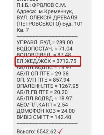 До редакції «Кременчуцького Телеграфа» вчора увечері звернулися аж троє мешканців малосімейки, що знаходиться на вулиці Олексія Древаля,101 зі скаргами щодо надзвичайно великих платіжок, які вони отримали за електроенергію. Цифра у надісланих копіях платіжок дійсно вражала — 3712 грн!