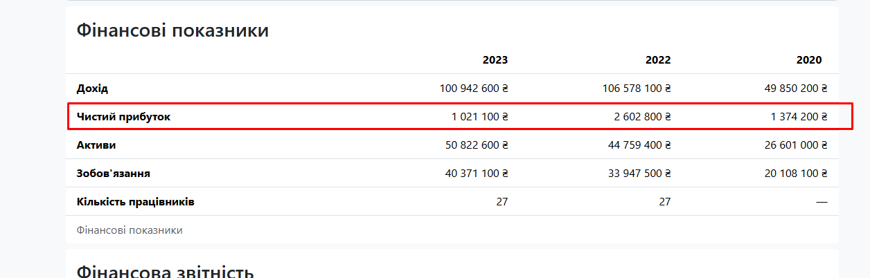 Фінансові показники компанії, що орендує приміщення за 8 кв. м в місяць, за 2023 та 2022 роки: