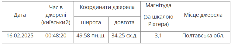 Цієї ночі на Полтавщині стався землетрус. Про це інформують у пресслужбі Головного центру спеціального контролю.