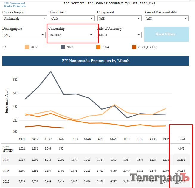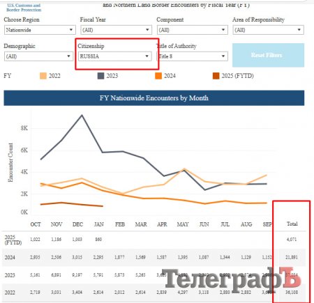 Про це мало кричать ЗМІ, проте у 2022-2025 у США прибуло майже 120 тисяч росіян, які як і українці попрохали «пароль». Переважно, мордорці прохали політичний притулок, заявляючи на кордоні, що не підтримують політику путлера, тікають від мобілізації та переслідувань у рф.