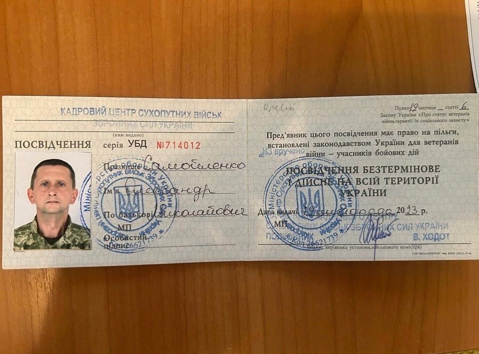 Олександрові Самойленку потрібно відновити посвідчення УБД. Донька Анастасія просить повернути, документ, якщо хтось його знайде.