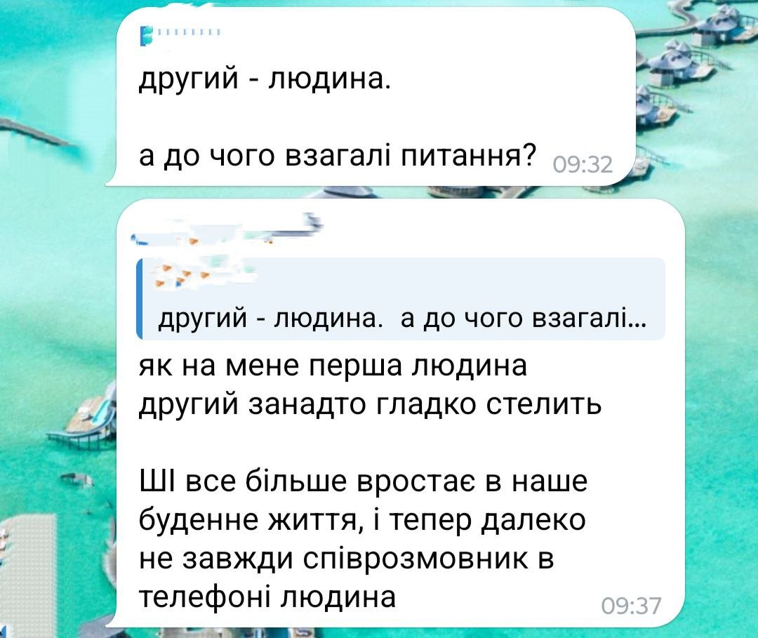 Отже, на запису перший голос — реальної людини, нашої журналістки. А другий — її ж голос, але згенерований штучним інтелектом на основі реального запису.