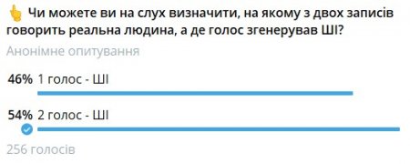 Ми провели тест серед наших підписників, запитавши, чи можуть вони на слух визначити, на якому з двох записів говорить реальна людина, а де голос згенерував ШІ.
