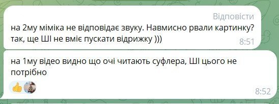 Крім того, наші читачі формулювали власні аргументи, чому, на їхню думку, реальною є перша ведуча, а друга — згенерована за допомогою ШІ.