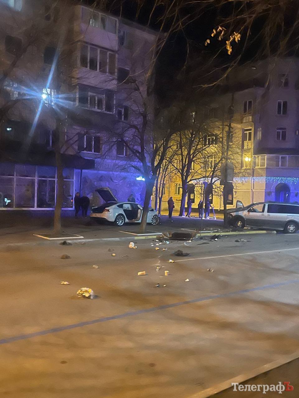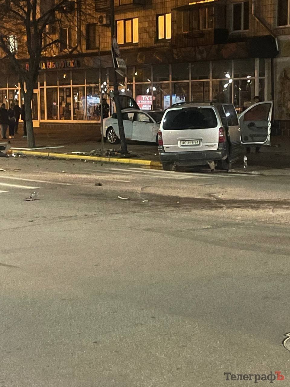 Внаслідок зіткнення двох легкових автомобілів транспортні засоби відкинуло з проїжджої частини на пішохідну зону.