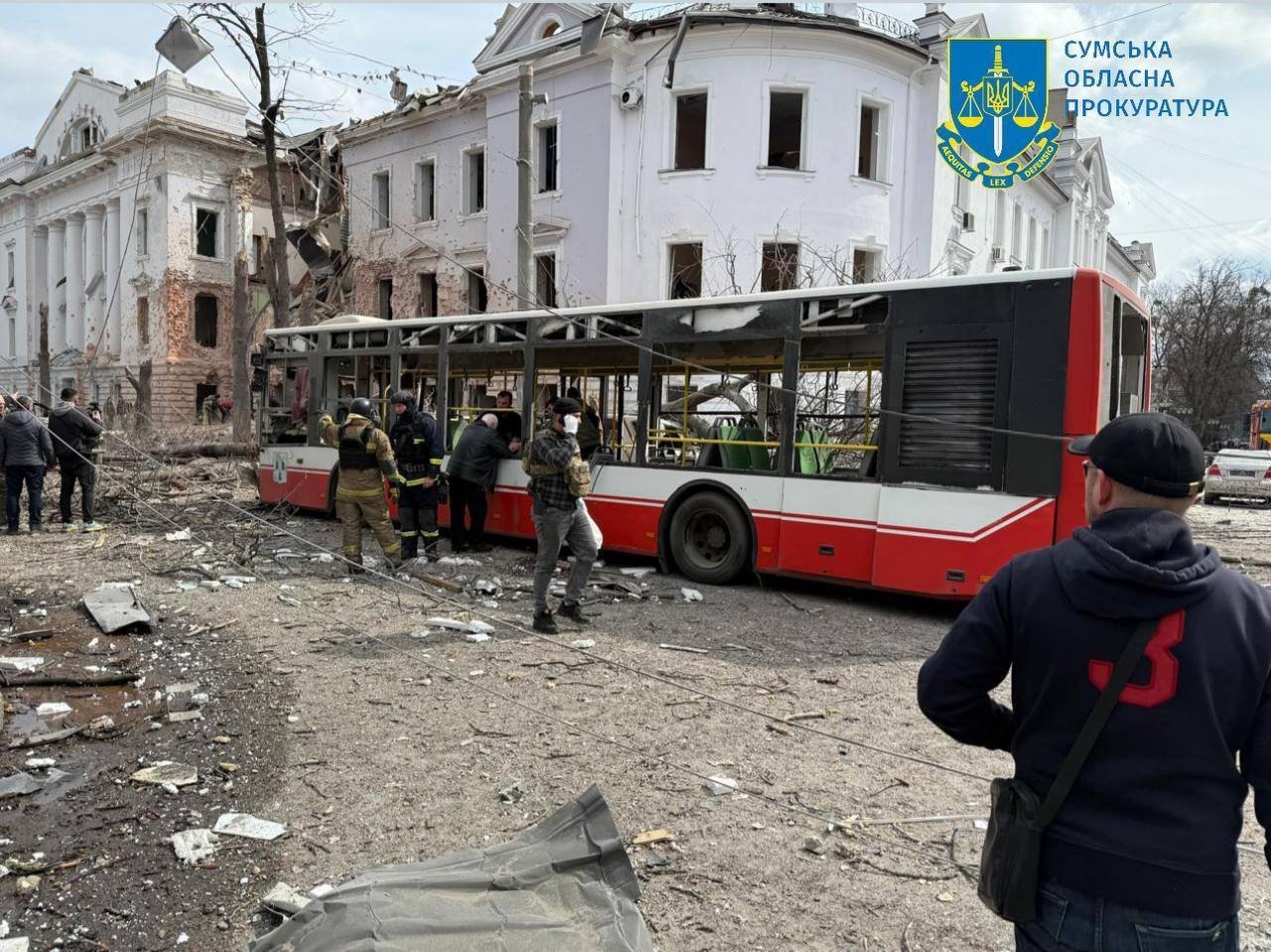 За повідомленням Сумської обласної прокуратури, унаслідок ракетного удару російської армії в Сумах 21 загиблий та 34 поранених, з них 5 дітей. Розпочато слідство. Досудове розслідування здійснюється слідчими СБУ.