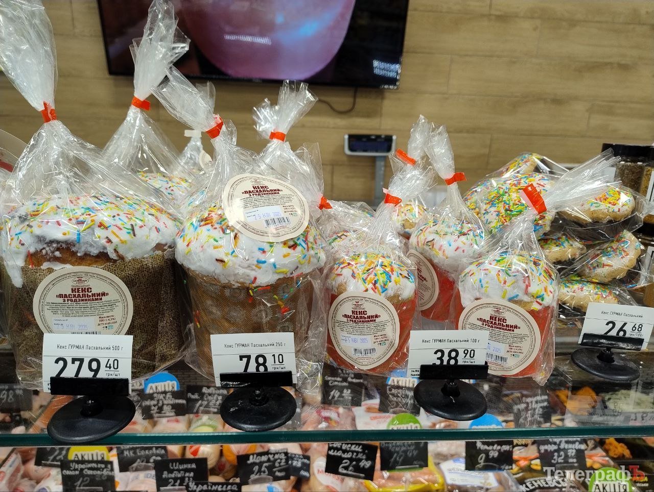 Також в АТБ придбати можна паски і їхнього виробництва. Ціна стартує від 32,90 грн за найменшу — вагою 130 г. Далі ціна збільшується залежно від ваги, начинки та оздоблення. До прикладу, сирна паска вагою 350 г обійдеться у 125,90 грн, а крафін вагою 300 г — 154,90 грн.