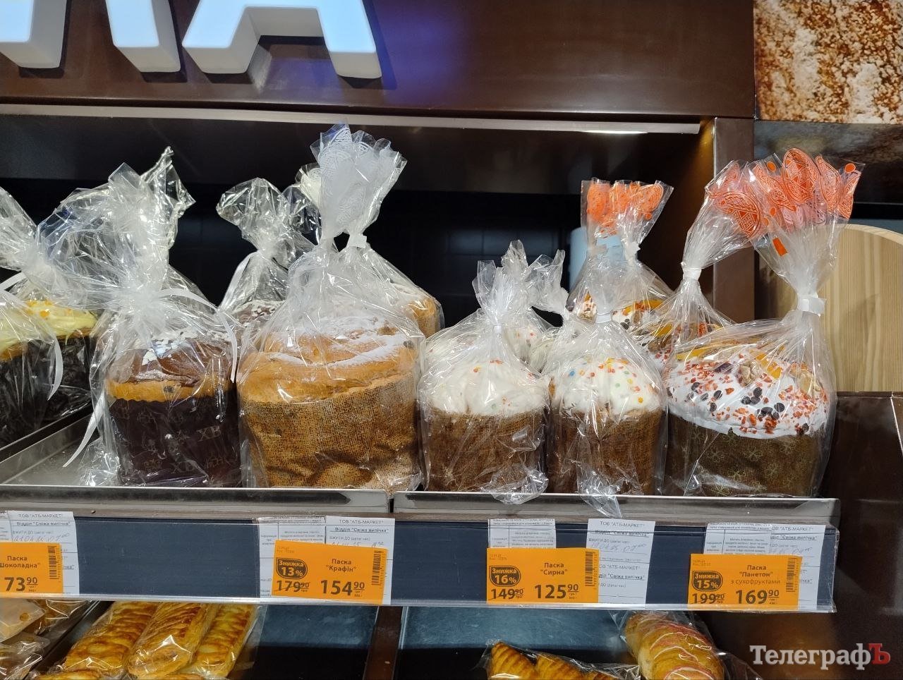 Схожа ситуація і в магазинах мережі АТБ. Там найдешевша маленька паска вартує 29,80 грн, її вага — 120 г. Виробник такої паски — «Кулиничі», вона має маркування «освячено». Від цього ж виробника паска вагою 0,5 кг обійдеться у 78,90 грн.