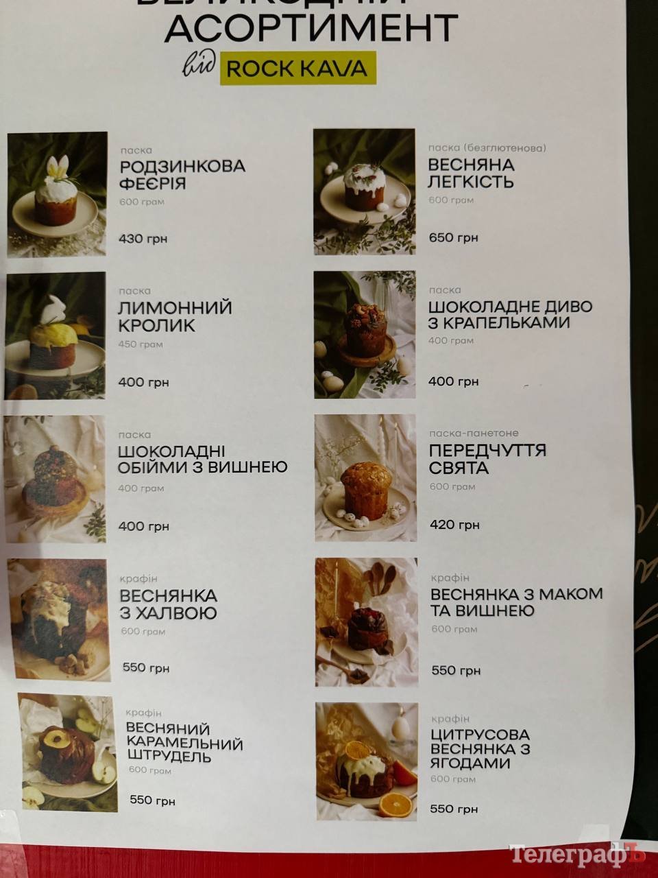 Пропонує асортимент пасок на замовлення і мережа закладів «Rock Kava». Можна ознайомитися із меню та замовити собі паску на будь-який смак, аби ж придбати безпосередньо в закладі.
