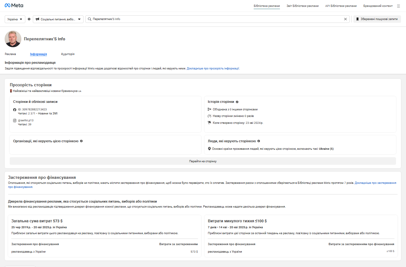 Хто і скільки витрачає на просування себе у Facebook — з’ясував «Кременчуцький Телеграф» за допомогою Бібліотеки реклами Meta.