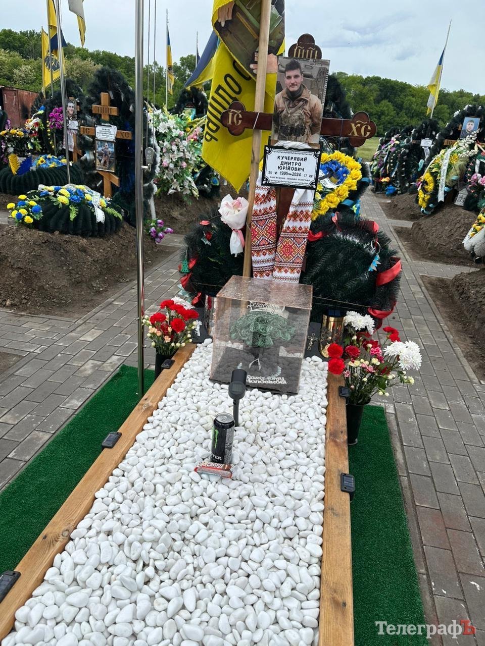 До нас знову звернулася дружина полеглого захисника Дмитра Кучерявого, Ірина. Жінка розповідає: до надгробка по периметру було болтиками прикручене штучне освітлення. Також посередині знаходилась лампочка, яка підсвічувала портрет Дмитра. А сьогодні, 20 травня, усього цього немає.